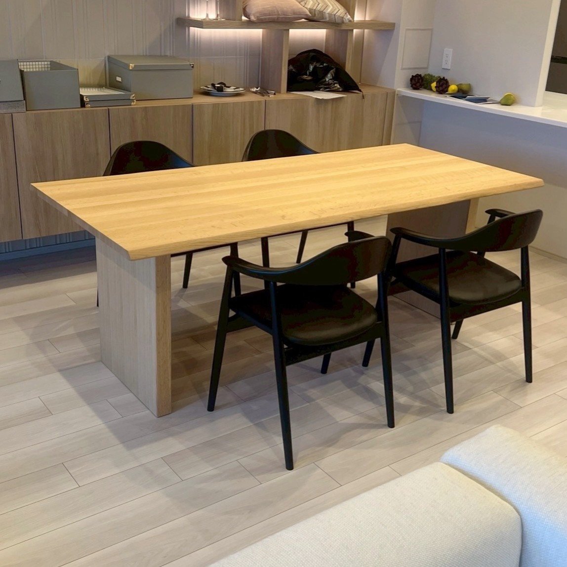 柏木工らしい贅沢に無垢材を使用したダイニングテーブルとダイニングチェア。